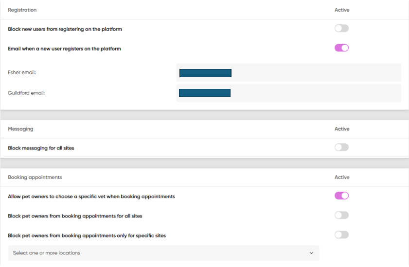 b. Block pet owners from booking appointments for all sites - you may wish to block clients from being able to book an appointment via MWI Pet for all sites. For example, if there are staffing issues or an emergency has arisen.