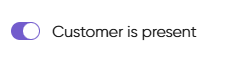 6. By default the assumption is the customer is present, if the cardholder is not present please click the slider button which will set the terminal into "cardholder not present" mode: