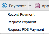 - Once in a Merlin client record, click on the dropdown arrow at the side of the payments button. A new dropdown menu will appear.