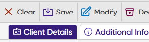 Any time you need to modify a client record, navigate to the record and click 'modify'.