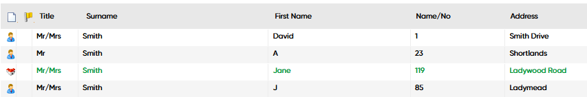 - The grid in the lower half of the window will display any addresses which correspond to the postcode. Select the address required and the address fields will populate.